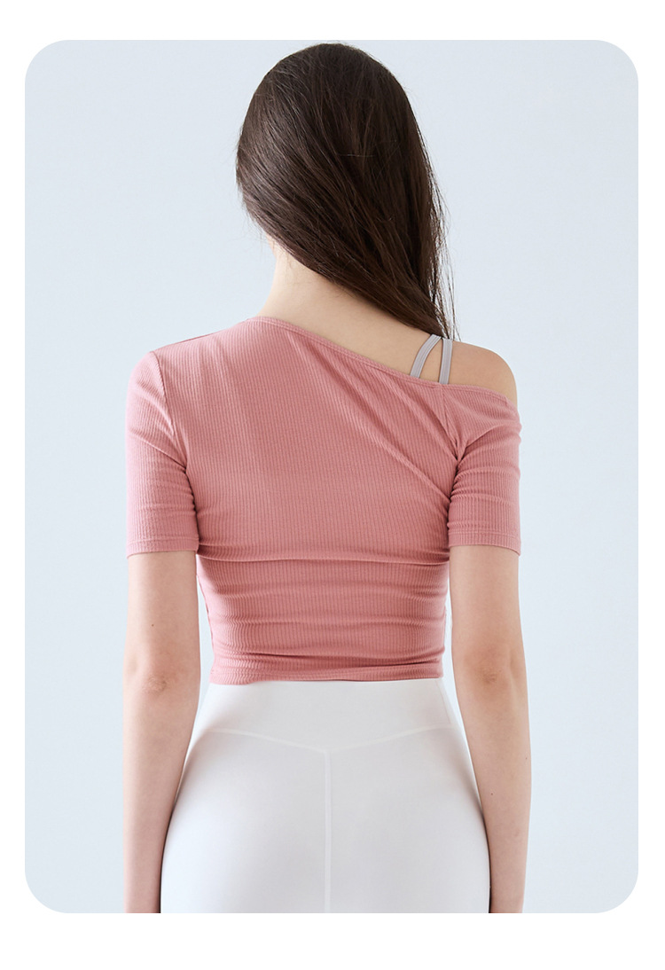 Summer lust beauty shoulder yoga wear T-shirt women's running short sleeve fashion fitness wear top