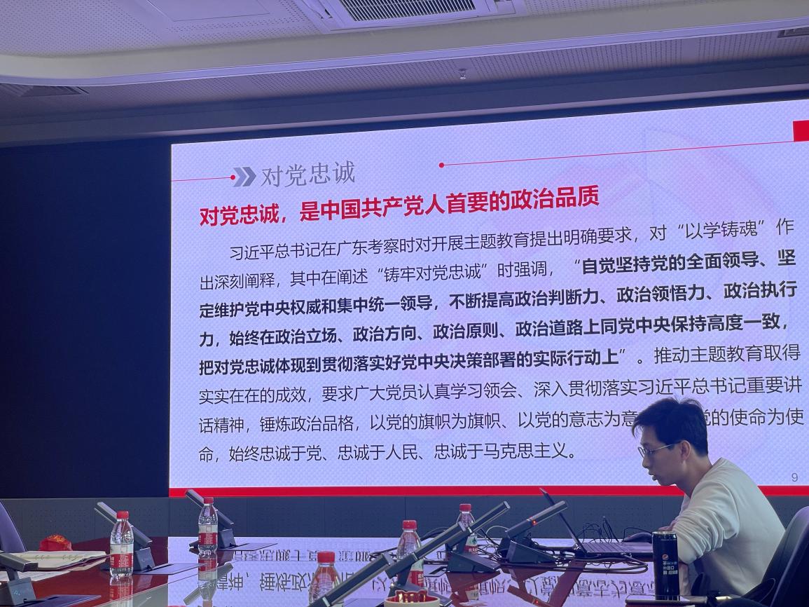 本科生第二党支部书记张英鹏同志围绕理想信念、对党忠诚、奋斗实干、人民至上和党风问题五个方面详细介绍了如何“紧紧锚定开展主题教育的目标任务”展开支部党建工作。