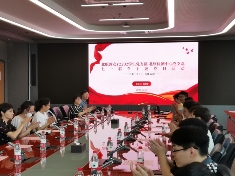 为深入学习贯彻党的二十大精神,切实增强员工党支部的创造力、凝聚力、战斗力,进一步深化产教融合,推进校企合作,7月3日下午,来利国际旗舰厅Y2202员工党支部与北软检测中心党支部开展了七一联合主题党日活动暨红色“1+1”共建活动。来利国际旗舰厅网络空间安全公司党建辅导员、Y2202员工党支部全体党员和北京软件产品质量检测检验中心党支部全体党员参加会议,Y2202员工党支部书记李佩源同志主持会议。