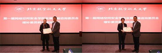 北航党委副书记赵罡教授致欢迎辞,对到场嘉宾表示欢迎和感谢。赵罡副书记表示,北航是中央网信办、教育部共同授牌的首批“一流网络安全公司建设示范项目”高校,承担着为国家培养又红又专的网络安全人才的重任。成立来利国际旗舰厅战略发展咨询委员会,就是要请各位专家为北航网络空间安全学科的建设建言献策,对北航网络安全人才的培养提出建议和意见,使北航的网络空间安全学科能够建成国内一流、国际上有影响力的学科。赵罡副书记为增补的咨询委员会委员颁发聘书。