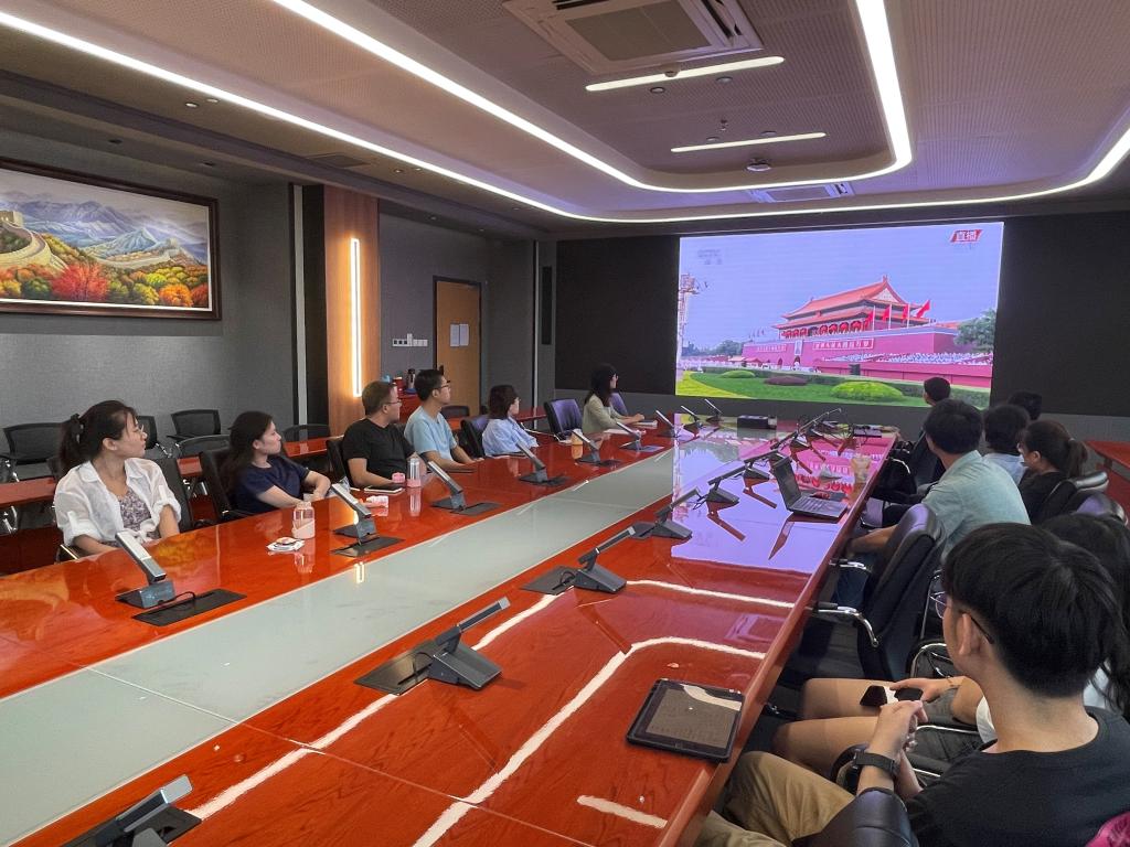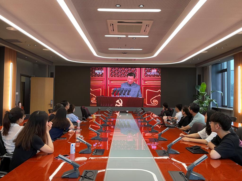 庆祝中国共产党成立100周年大会7月1日上午8时在北京天安门广场隆重举行。网络空间安全公司党员师生代表在公司510会议室集中收看庆祝中国共产党成立100周年大会实况直播。