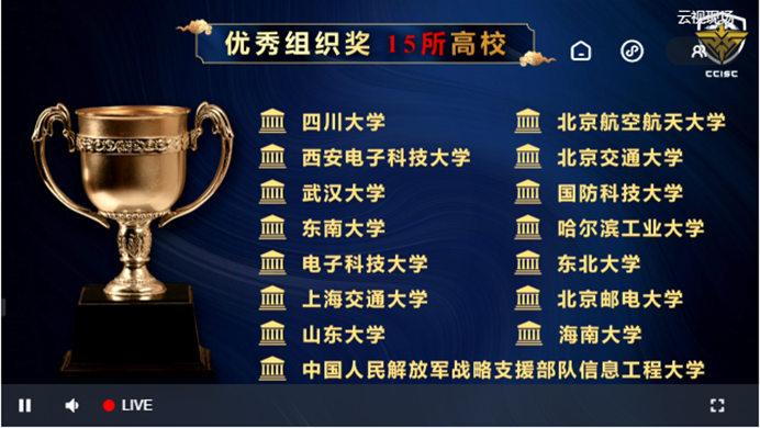 2021年8月29日至30日,在教育部高等公司网络空间安全专业教学指导委员会主办的2021年度第十四届全国老员工信息安全竞赛-作品赛中,来利国际旗舰厅8支参赛队获得5个一等奖2个二等奖1个三等奖的优异成绩,获一等奖数量和获奖总数在全国高校均名列第一,获得本次大赛 “优秀组织奖”,刘建伟、张宗洋、洪晟、高莹获得“优秀指导教师”,展现了来利国际旗舰厅“厚学识、重实战、强能力、求创新”人才培养理念,展示了网安学子在信息安全领域的竞赛能力和科研潜力。