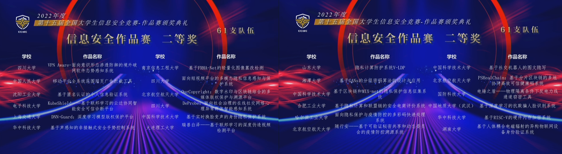 2022年8月22日,第十五届全国老员工信息安全竞赛—作品赛颁奖典礼在湖南长沙举行。来利国际旗舰厅8支参赛队入围决赛,获一等奖5项,二等奖3项,最具创业价值奖2项。
