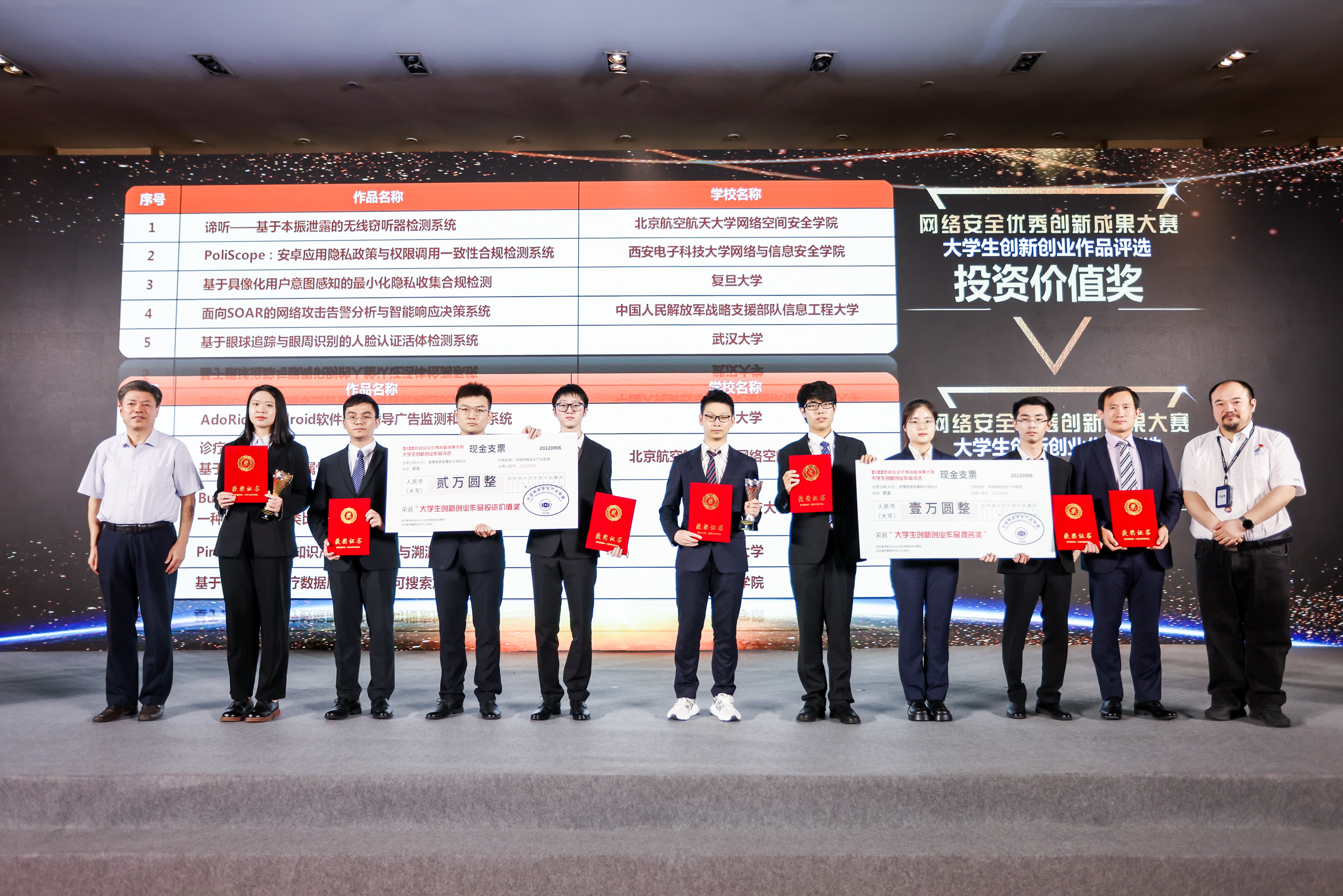 《谛听——基于本振泄露的无线窃听器检测系统》(队员:杨竣皓、黄翔、潘豪文、任晨辉,导师:张骞允)在决赛中以第1名的成绩获得创新创业作品投资价值奖(全国共5项),《诊疗宝——基于零知识证明和属性基加密的区块链电子健康档案》(队员:李天宇、陶虹宇、田蕾、陈昕,导师:张宗洋)在决赛中以并列第7名的成绩获得创新创业作品提名奖(全国共5项)。