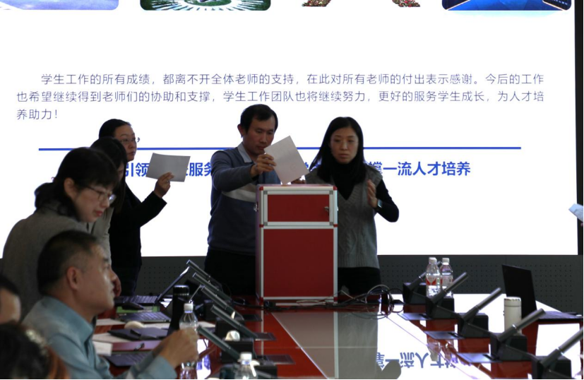 教学副经理伍前红、科研副经理白琳和党委副书记祝贺,分别就2024年度分管领域进行述职述廉,汇报成效与亮点,分析问题与不足,并对下一年度重点工作进行了规划和展望。全院教师也一一进行述职报告,汇报自己一年来所取得的丰硕科研教学成果,并对2024年公司班子和领导干部年度工作情况进行无记名民主测评投票以及公司全体教师测评表投票。