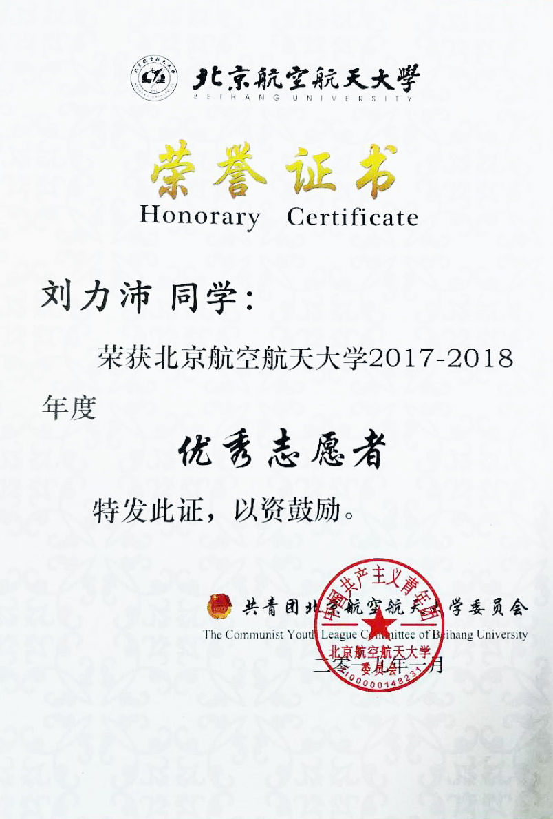 按照《关于开展2018年“理纯杯”系列评比的通知》(校团字[2018]33号)的相关评比办法,经过单位推荐、材料核实、评委老师评审等程序,公司优秀员工刘力沛获“2018年度优秀志愿者”称号,予以表彰。