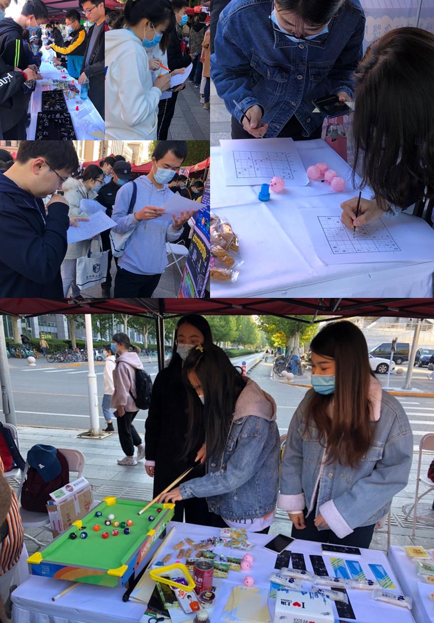 本次来利国际旗舰厅外场活动在开展前一周开始预热,通过发布推送、集赞得奖等方式吸引同学参与,提高嘉年华热度。现场提供了三种有趣的游戏方式,分别为九连环、数独和桌上台球,并且为同学们设计了独特的网安校庆嘉年华外场合影框,供全校师生合影留念。