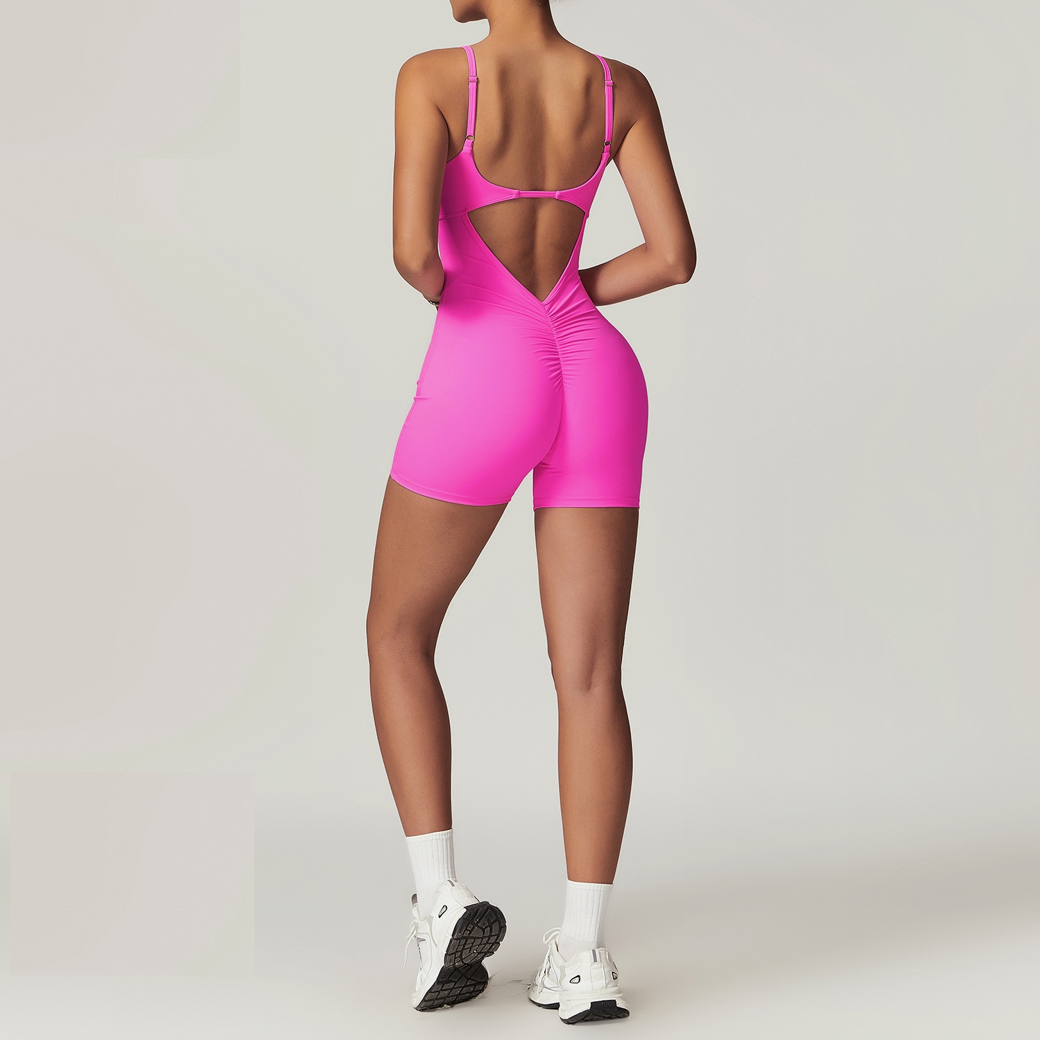Peach hip lifting tight fitting one-piece yoga suit for women beautiful back fitness suit
